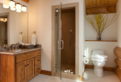 Inside, the oversized logs lend visual depth while also creating a warm environment for après ski gatherings. Features of the home include a main floor Master suite, as well as two upstairs en suite bedrooms. More rooms downstairs and a private theater provide spaces for guests and in-home entertainment.